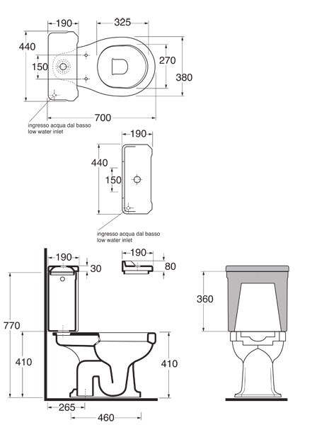 Rozměry wc: 70 × 40 × 88 cm (h × š × v)