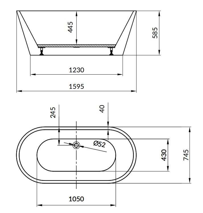 Součástí van je rám s nastavitelnými nohami a výpustí s chromovanou zátkou.Samozřejmě je možné použít výpust s klik-clack zátkou v černém nebo zlatém provedení, které jsou u výrobce CERSANIT dostupné.