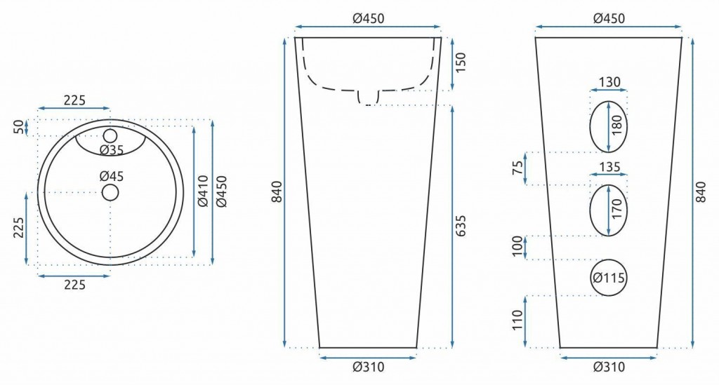| Šířka umyvadla | 450 |