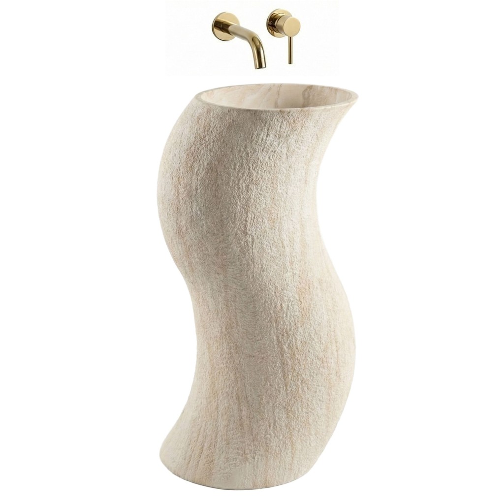 Toužíš proměnit svou koupelnu v luxusní domácí spa? Poznej volně stojící podlahové umyvadlo Rea Melody, které okouzlí organickým tvarem a přírodním vzhledem. Tento výjimečný model z odolného kompozitu Artificial Stone je skutečným dílem užitného umění a stane se hlavní ozdobou každého interiéru.Materiál Artificial Stone – inovativní kompozitní umělý kámen zaručuje mimořádnou odolnost, masivnost a rezistenci vůči mechanickému poškození. Navíc dobře udržuje teplotu a je příjemný na dotek.Vzor přírodního travertinu – vnější povrch umyvadla má unikátní drsnou texturu, která připomíná přírodní skálu. Pískové béžové odstíny a hmatatelná struktura vnášejí do prostoru teplo.Dokonale hladký vnitřek – v promyšleném kontrastu k surovému plášti je vnitřní část mísy perfektně vyhlazená. Díky tomu voda volně odtéká a každodenní údržba je snadná.Organická, sochařská forma – plynulé vlnité linie a elegantní zúžení dodávají těžké kompozitní hmotě vizuální lehkost a dynamiku. Umyvadlo připomíná tvar utvářený živly.Promyšlená montáž (revizní otvor) – na zadní straně podstavce je umístěn speciální otvor. Umožňuje pohodlné napojení sifonu a odpadu a účinně skrývá všechny technické prvky.Podlahové umyvadlo Rea Melody je ideální volbou pro milovníky neotřelého designu. Jeho jedinečný charakter skvěle zapadne do koupelen ve stylu wabi-sabi, japandi, boho či organic modern a vytvoří prostor plný harmonie a klidu.