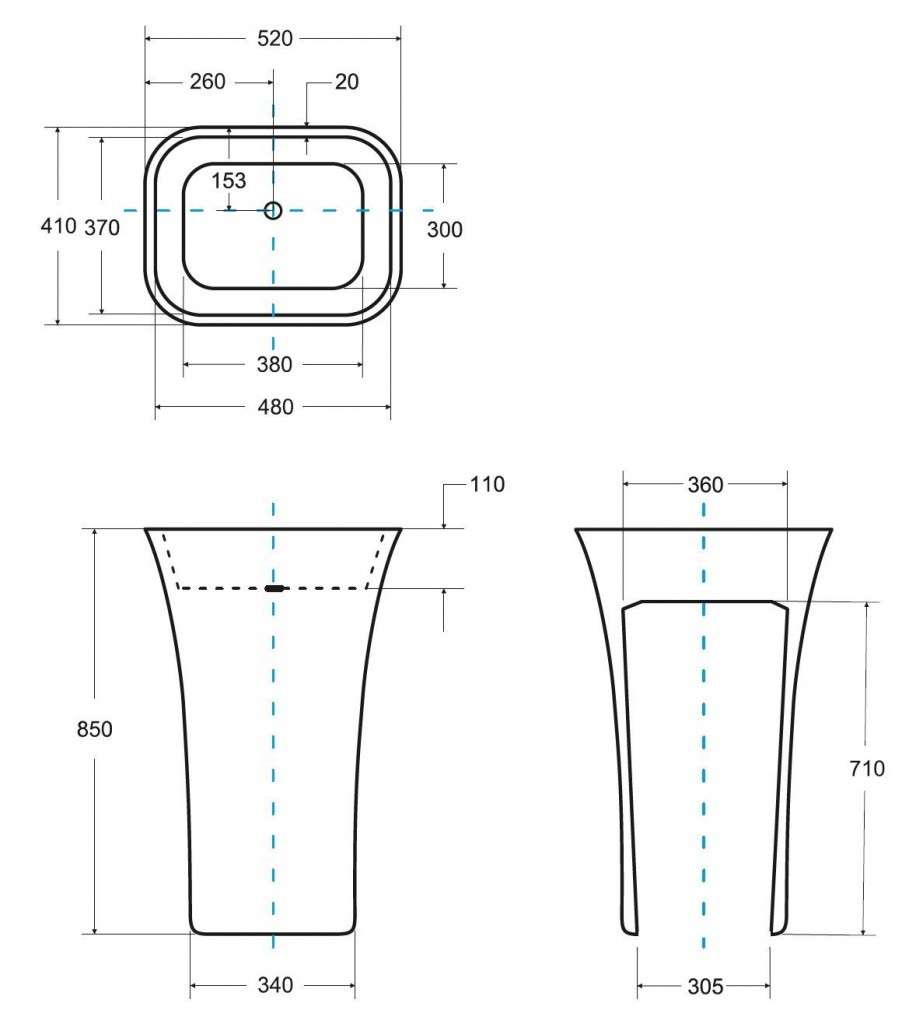 Rozměr volně stojícího umyvadla:- 500 × 400× 850 mm