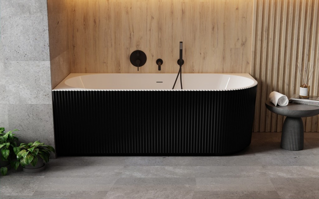 Asymetrická volně stojící vana DENAYA v populární černo/bílé kombinaci pro instalaci do rohu s velmi originální vroubkovaným čelním panelem, ve dvou praktických rozměrech, robustní konstrukce a jemný moderní design. Vana je vyrobena z kvalitního sanitárního akrylátu. Díky tomu má praktickou hmotnost a je dostatečně pevná. Výhodou je snadná instalace, není nutné podezdění ani obklad vany. Součástí vany je také odtokový systém click-clack se štěrbinovým přepadem v barvě chrom. Dále nabízíme tyto sifony za příplatek v dalších 3 barvách (zlatá, černá, bílá).