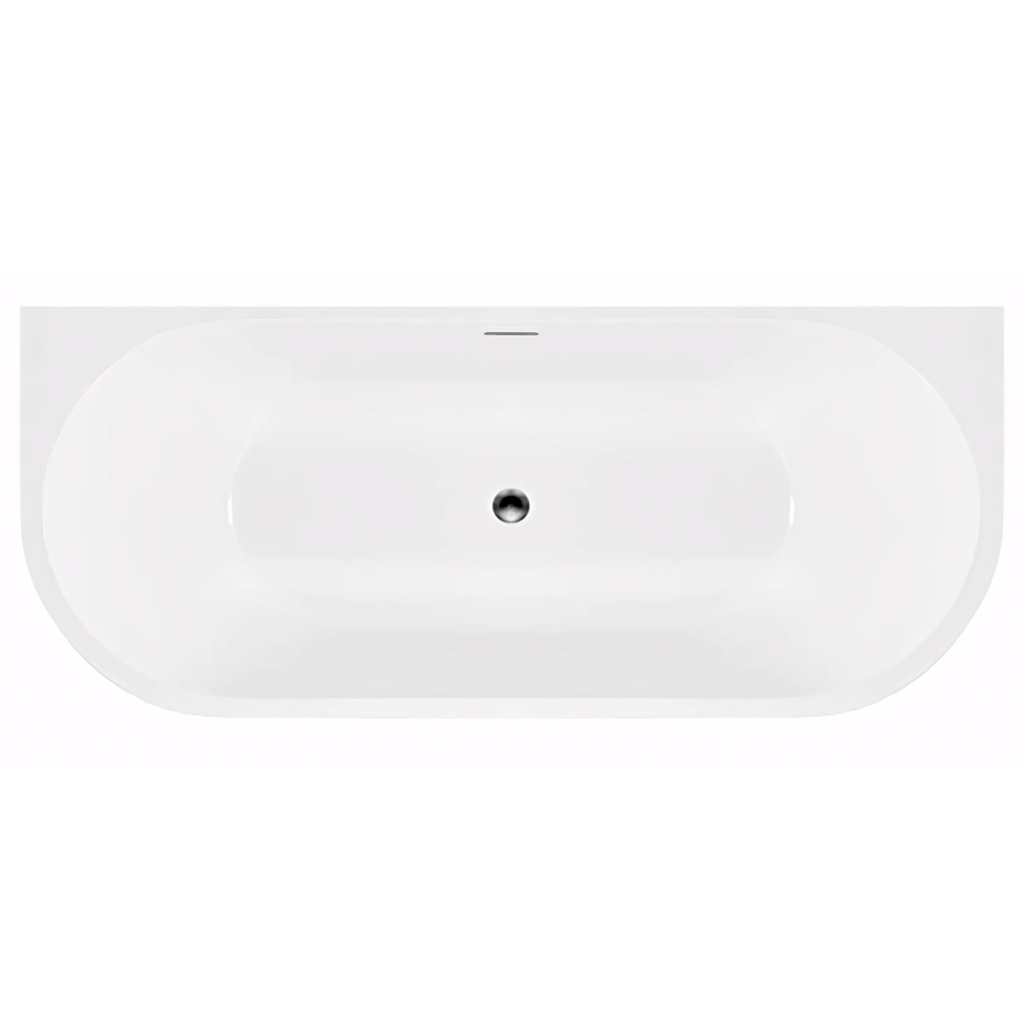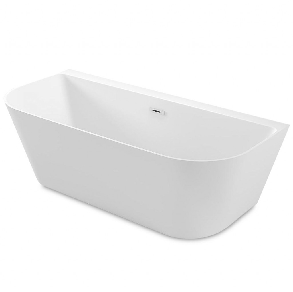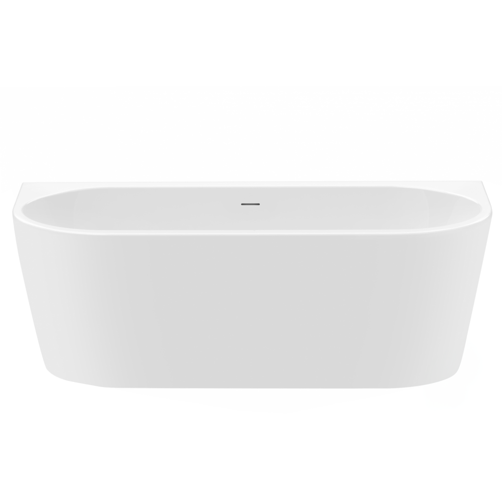 Volně stojící vany jsou často spojovány s luxusními koupelnami a nabízejí jedinečný zážitek z koupání. Vana má hladké, zakřivené okraje a obdélníkovou základnu, která je určená k umístění ke stěně. Přepadový odtok je viditelný, což ukazuje na funkčnost vany při prevenci přeplnění.