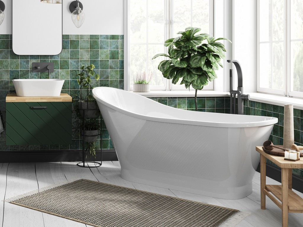 Rozměr volně stojící vany:- 150 × 66 cm, objem 160 l