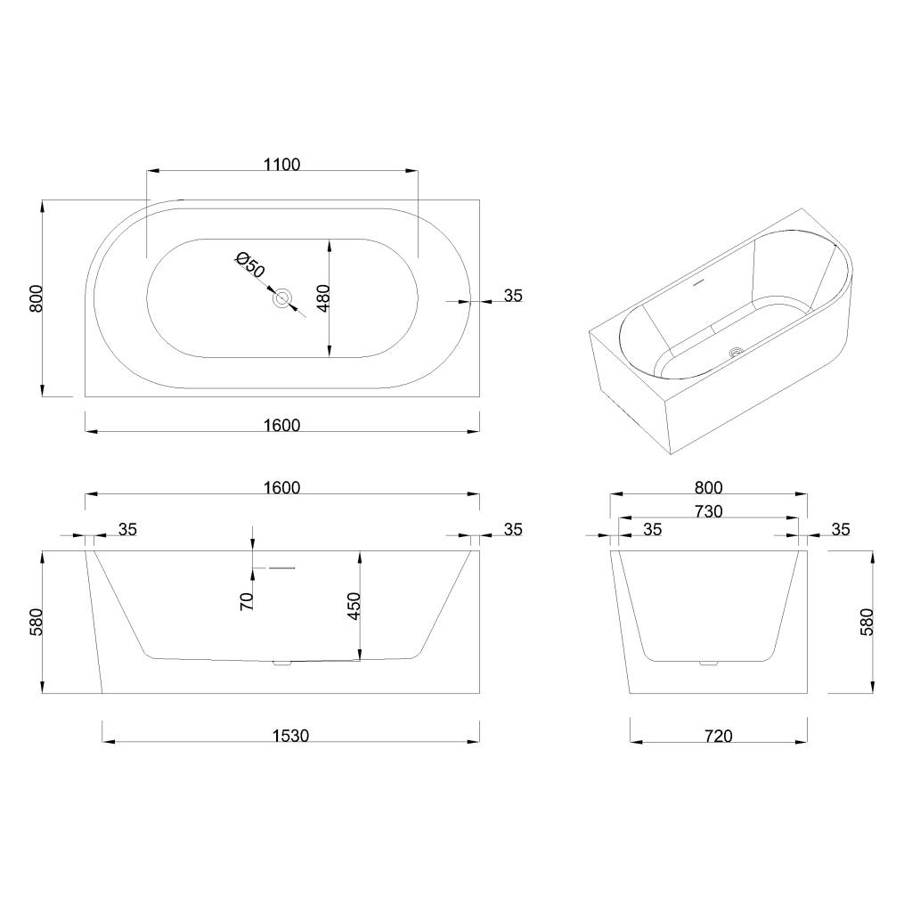 Levostranný design umožňuje flexibilní a funkční plánování prostoru, takže je vhodný pro menší i větší interiéry. S délkou 160 cm a šířkou 80 cm nabízí vana výjimečný komfort při koupání a zároveň si zachovává elegantní vzhled typický pro volně stojící, nástěnné modely.