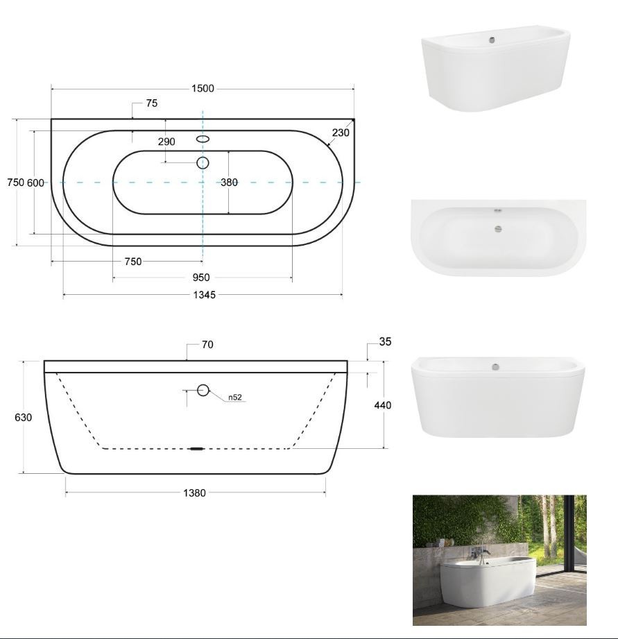 Vana VOLYA pro instalaci k průběžné stěně v čtyřech praktických rozměrech, robustní konstrukce a jemný moderní design. Vana je vyrobena z kvalitního sanitárního kompozitu (akrylátu). Díky tomu má praktickou hmotnost a je dostatečně pevná. Vanu lze umístit ke zdi. Výhodou je snadná instalace, není nutné podezdění ani obklad vany. Součástí vany je také odtokový systém.