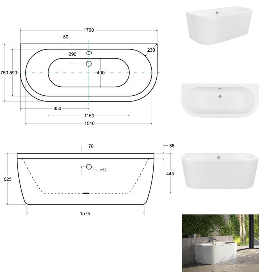 Vana VOLYA pro instalaci k průběžné stěně v čtyřech praktických rozměrech, robustní konstrukce a jemný moderní design. Vana je vyrobena z kvalitního sanitárního kompozitu (akrylátu). Díky tomu má praktickou hmotnost a je dostatečně pevná. Vanu lze umístit ke zdi. Výhodou je snadná instalace, není nutné podezdění ani obklad vany. Součástí vany je také odtokový systém.