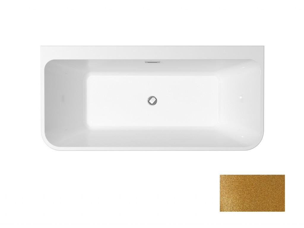 Symetrická vana VARYA GLAM pro instalaci ke stěně v dvou praktických rozměrech, 150 x 75 cm nebo 170 x 80 cm, robustní konstrukce a jemný moderní design. Vana je vyrobena z kvalitního akrylátu. Čelní strana je provedena ve GLAM01 zlaté barvě, horní a vnitřní část vany v bílé barvě. Díky tomu má praktickou hmotnost a je dostatečně pevná. Vanu lze umístit ke zdi. Výhodou je snadná instalace, není nutné podezdění ani obklad vany. Součástí vany je také odtokový systém click-clack s přepadem v chromu ve standardním provedení. Dále nabízíme tyto sifony za příplatek v dalších 4 barvách (zlatá, černá, bílá a grafitová).
