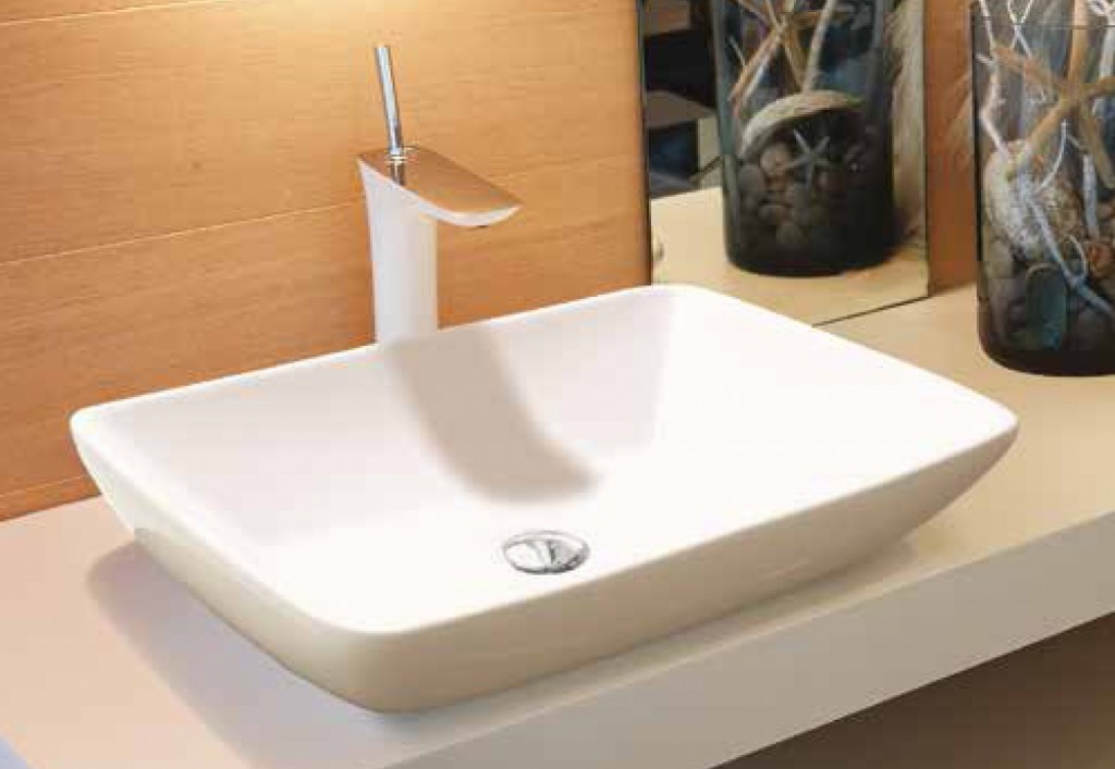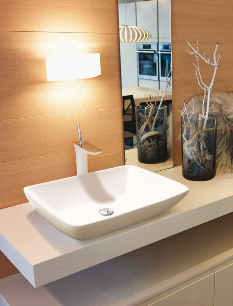 Základní tvary zjemněné zaoblením.Soliterní umyvadlo.