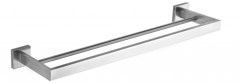 Nástěnný, dvojitý držák ručníků série VOX je hranatého tvaru a vyroben z nerezové oceli. Je určen k instalaci vrtaného spoje. Rozměry: široký 61,5 mm, vysoký 55 mm a hloubka od stěny je 120 mm.