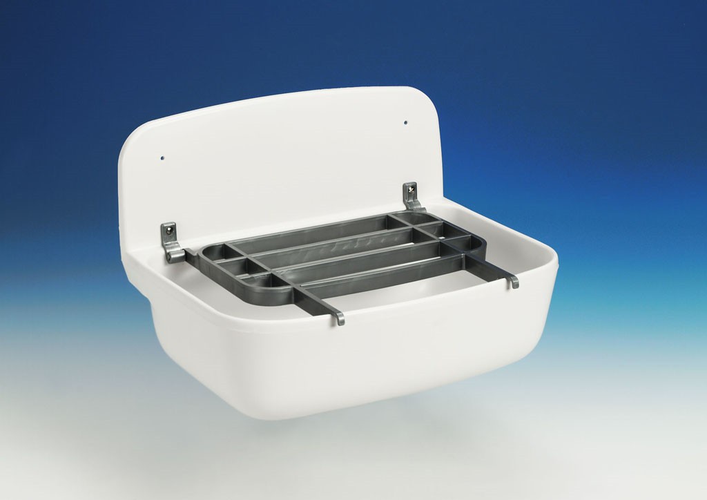 Umyvadlo s ochrannou zadní stěnou proti ostřiku, určené pro sklep, zahradu, garáž, dílnu. Vyrobeno sendvičovou technikou z polypropylenu odolného proti nárazu, teplotě, zředěným kyselinám, louhům a rozpouštědlům. Na odolnost proti rozlomení poskytujeme 10 let záruku. Komplet je dodáván s přepadem, vtokovou armaturou R 11, sítkem, zátkou s řetízkem a upevňovacím setem.