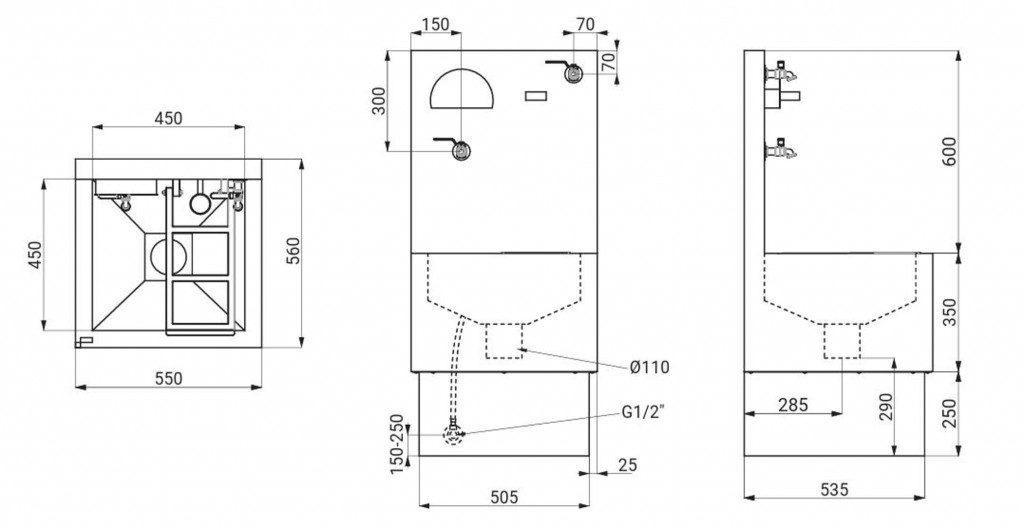 - s hadicí pro oplach WC kazety, napouštěcím kohoutem a mřížkou