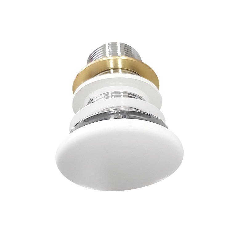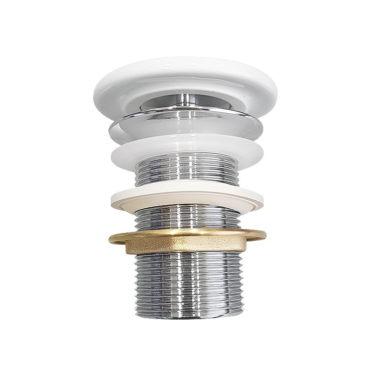 Neuzavíratelná výpust s keramickou zátkou v bílém provedení. Výpusť je určená pro umyvadla bez přepadu.