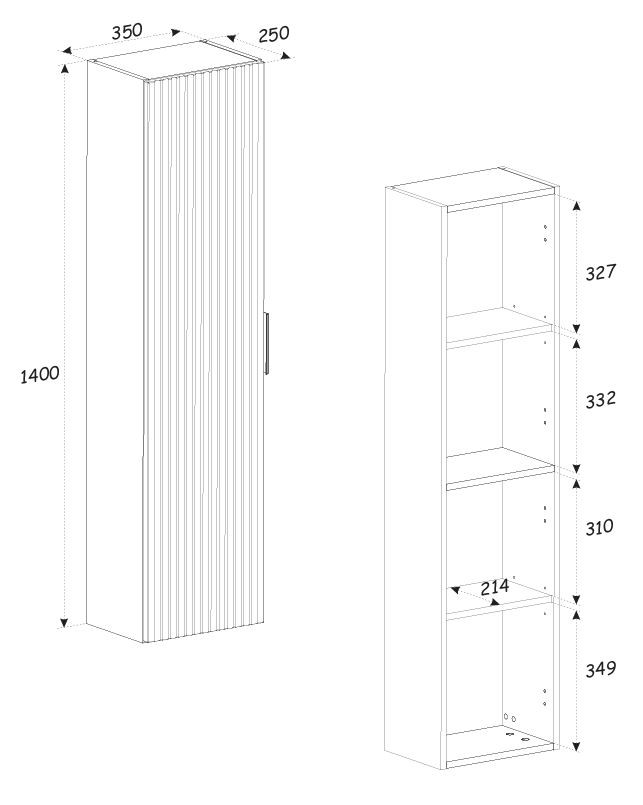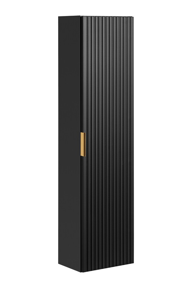 Moderní vysoká koupelnová skříňka v elegantní matné černé barvě. Díky úzkému profilu je ideální i do menších prostor. Jedny dvířka ukrývají praktický úložný prostor na ručníky, čisticí prostředky nebo další koupelnové potřeby. Nadčasový design doplní jak moderní, tak industriální interiéry.