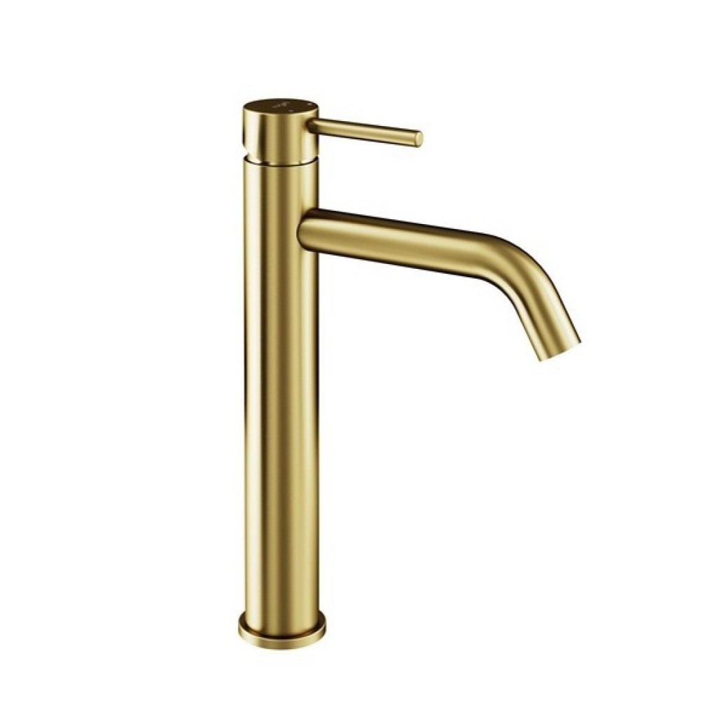 Vysoká stojánková umyvadlová baterie VEO I zlatá broušená barva představuje moderní design v elegantním oválném provedení. Baterie je osazena velmi kvalitní keramickou kartuší a značkovým perlátorem, který zajišťuje šetrnost ke spotřebě vody. Povrchová úprava speciálně upravena proti usazování nečistot a snadnou údržbu. Dodáváme v šesti barvách a to lesklý chrom, černá, zlatá, zlatá broušená, grafitová a zlatá lesklá.