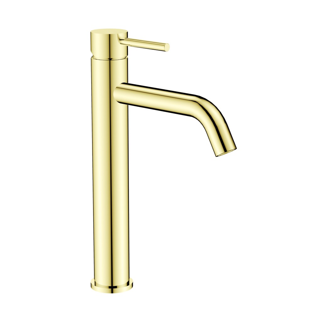 Vysoká stojánková umyvadlová baterie VEO I zlatá lesklá barva představuje moderní design v elegantním oválném provedení. Baterie je osazena velmi kvalitní keramickou kartuší a značkovým perlátorem, který zajišťuje šetrnost ke spotřebě vody. Povrchová úprava speciálně upravena proti usazování nečistot a snadnou údržbu. Dodáváme v pěti barvách a to lesklý chrom, černá, zlatá, grafitová a zlatá lesklá.