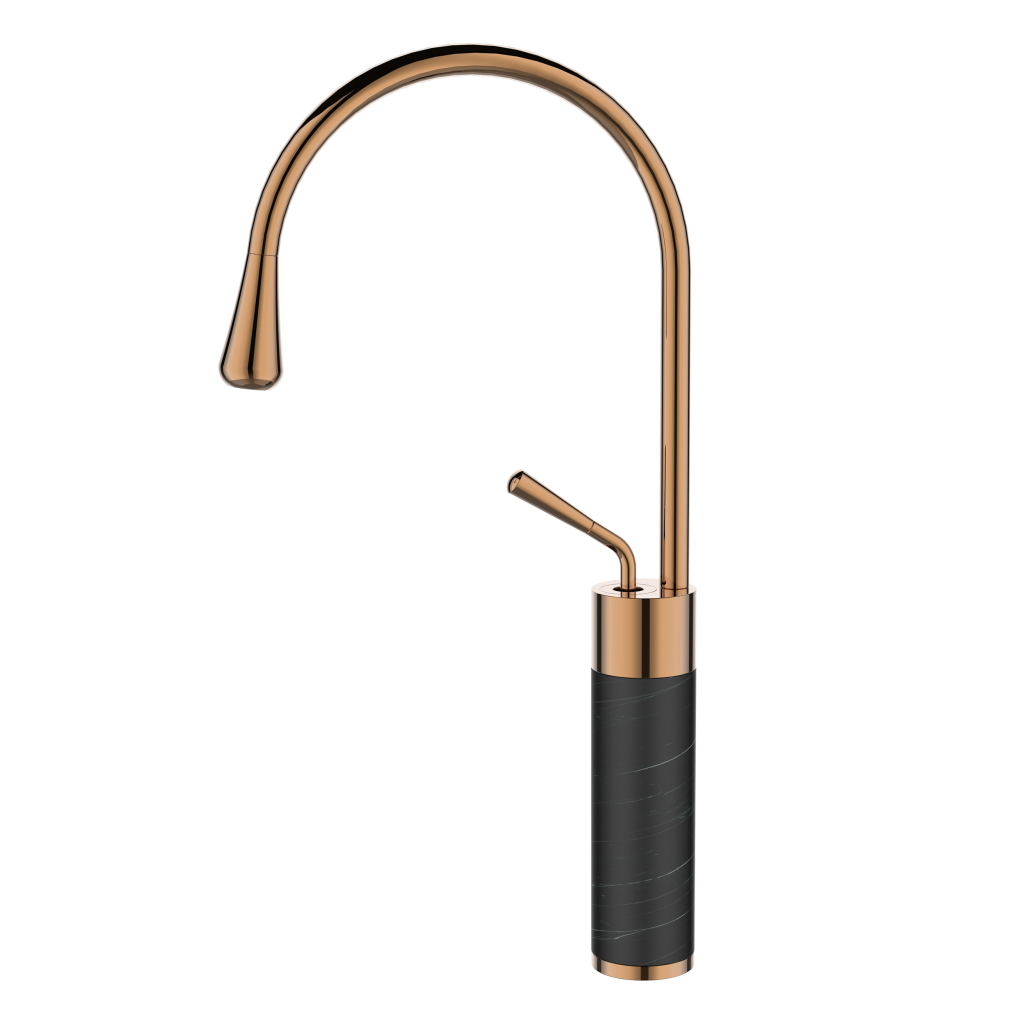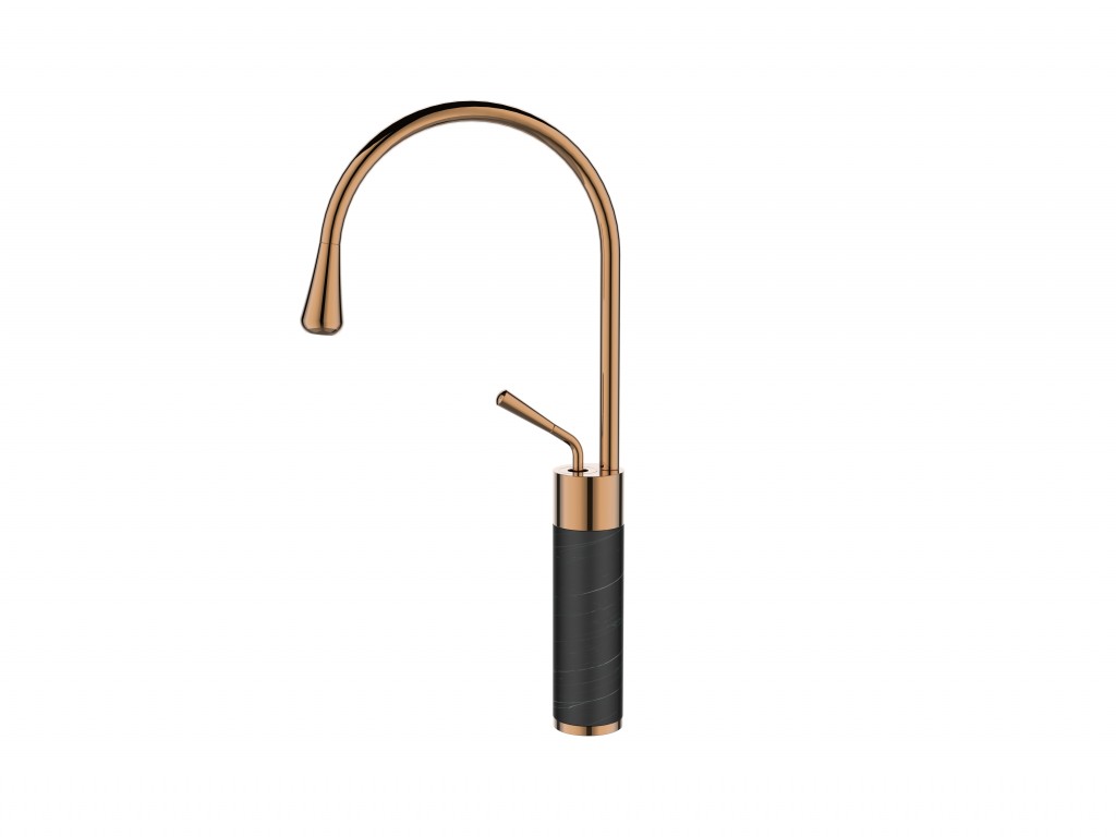 Umyvadlová baterie Gabro je typem baterie ve zcela nové podobě než dříve. Od standardních vodovodních baterií se odlišuje moderním tělem a ovládáním umístěném v přední části výrobku v podobě páky. Tělo baterie má mramorový vzor v odstínech bílé a černé, který dokonale ladí s její barevnou povrchovou úpravou. Konec výtokového ramínka připomíná kapku vody a dodává celé baterii mimořádnou jemnost. Odolná keramická kartuš zajišťuje dlouhodobé používání. Baterie spolu s umyvadlem na desku bude tvořit funkční a moderní vybavení umyvadlového prostoru.