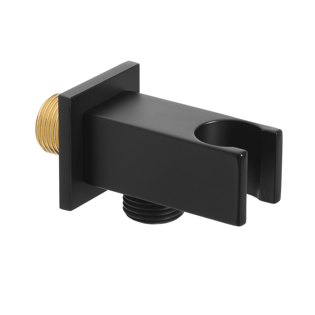 Držák ruční sprchy s vyústěním v černém provedení pro podomítkovou montáž, hranatý.