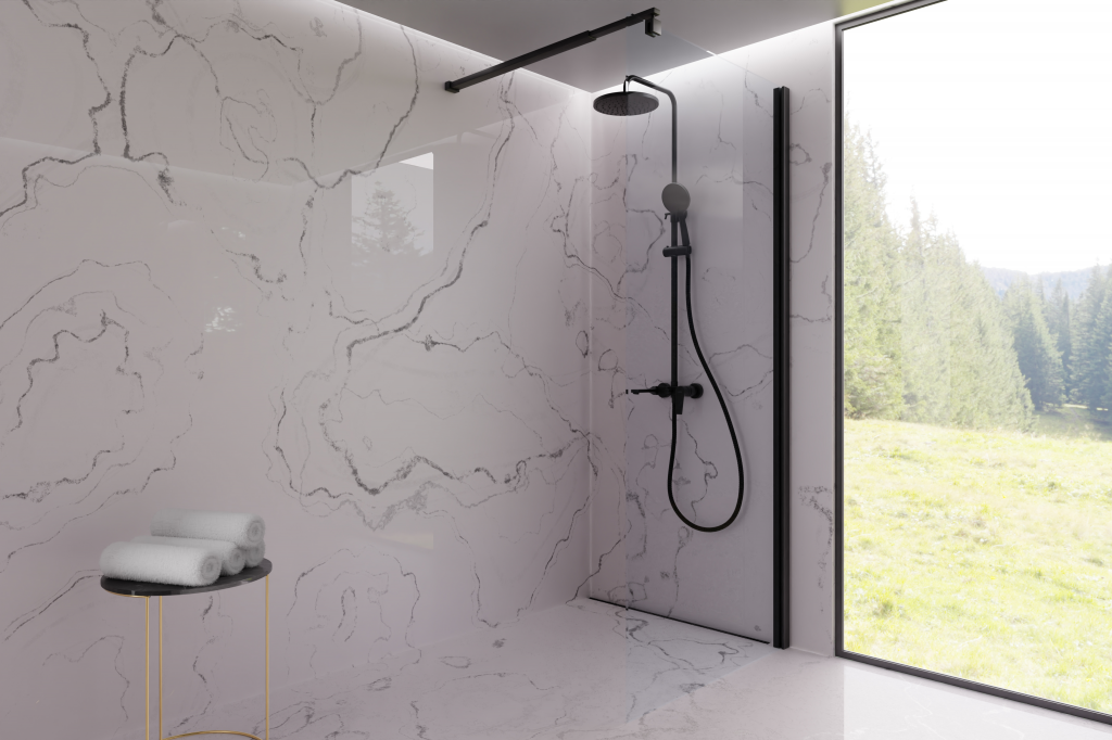 Walk-in kabina je návrh, který bude fungovat prakticky v každé koupelně. Hodí se i do malých koupelen v paneláku, kterým dodá lehkost a koupelnu opticky zvětší. Walk-in je vyrobena z průhledného skla o tloušťce 8 mm s povrchovou úpravou Shiny-Glass, která zabraňuje tvorbě vodního kamene a skvrn, díky čemuž si déle zachovává svůj lesklý vzhled. Černé prvky kabiny dokonale kontrastují se sklem. Kabina je k dispozici v pěti velikostech.