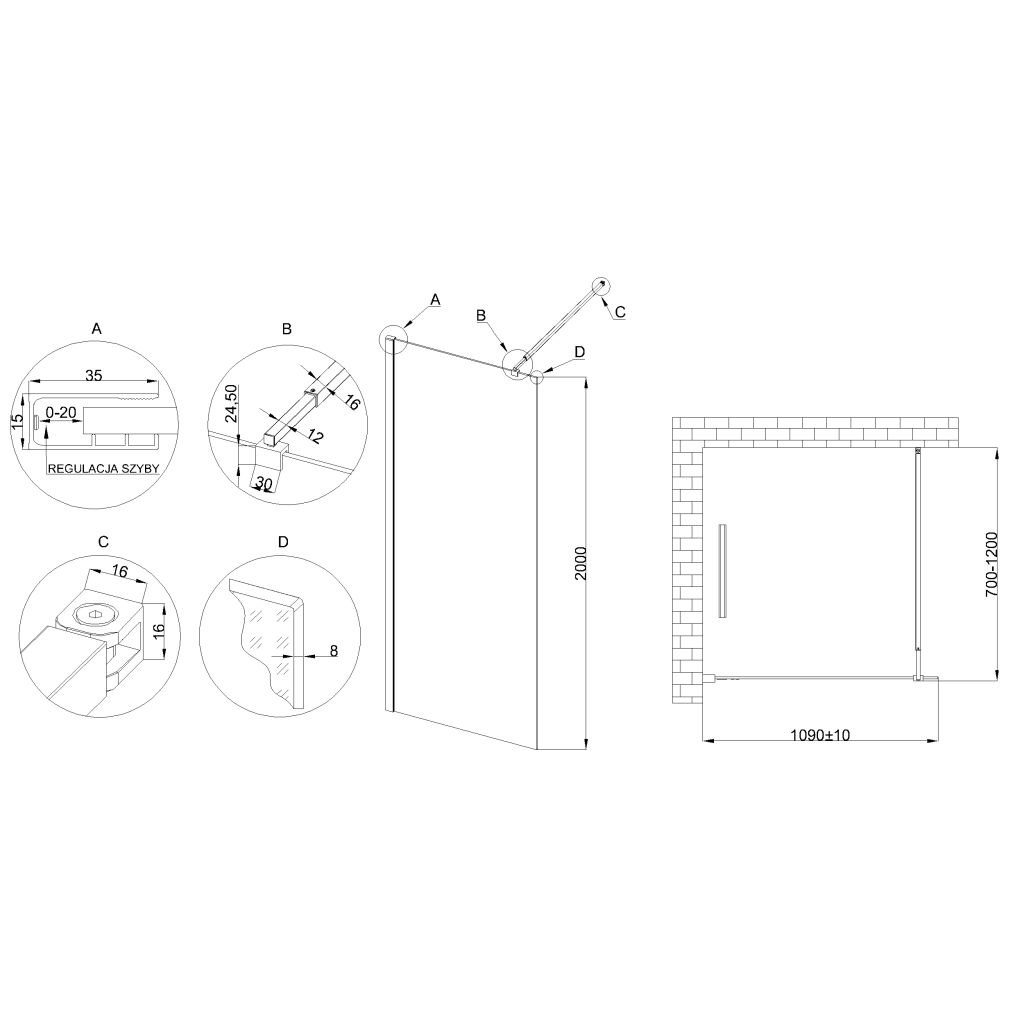 Naše sprchová zástěna je dokonalou kombinací moderního designu a praktických řešení. Je vyrobena z 8 mm silného tvrzeného skla s inovativním lesklým povrchem, usnadňuje čištění a dodává každé koupelně nádech třpytu. Průhledná skleněná konstrukce dodává prostoru lehkost a opticky zvětšuje prostor, čímž vytváří pocit otevřenosti a svobody. Unikátní teleskopický nastavovací systém umožňuje nastavit využitelnou hloubku sprchového koutu od 70 do 120 cm a umožňuje instalaci v libovolném úhlu. Díky tomu je zástěna ideální pro různá uspořádání koupelen, a to jak pro praváky, tak pro leváky. Výška 200 cm zajišťuje pohodlné používání, zatímco jednodílný hliníkový profil, schopný vyrovnat nerovnosti stěn až do 2 cm, a snadno instalovatelný systém umožňují rychlou a bezproblémovou instalaci. Naši sprchovou zástěnu lze namontovat buď na sprchovou vaničku, nebo přímo na dlaždice, což vám dává naprostou svobodu v interiérovém designu. Vyberte si naši sprchovou zástěnu a užívejte si eleganci a pohodlí každý den! Vstupní stěna je k dispozici v následujících rozměrech: 80x200 cm, 90x200 cm, 100x200 cm, 110x200 cm, 120x200 cm.