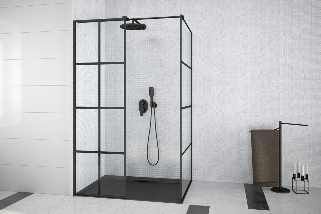 Walk-in sprchová zástěna EXCEA s rámem a rozpěrnou tyčí v černé barvě, nabízí jednoduché a přitom praktické řešení bez použití pohyblivých dveří, ale s maximálním vstupem. Dá se osadit jak na sprchové vaničky, tak i přímo na podlahu. Zástěny jsou vyrobeny z bezpečnostního skla. Dodává se v univerzálním pravém i levém provedení.