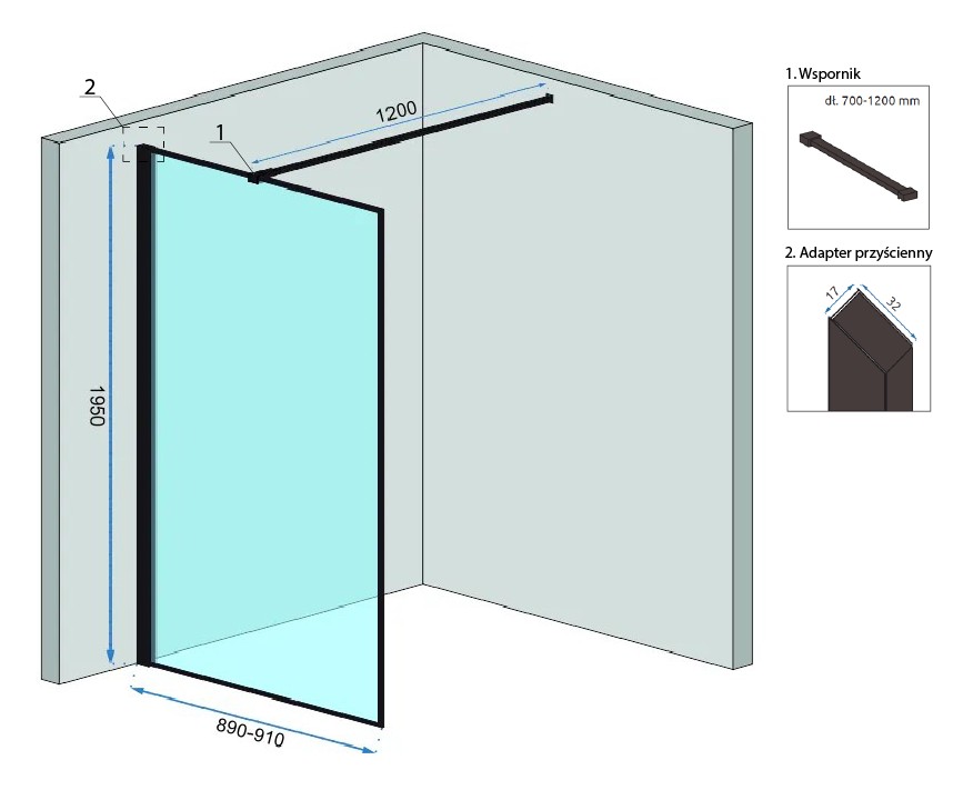 Součástí sprchové zástěny je vzpěrná konzole, kterou seříznutím přizpůsobíte vašemu prostoru. Rozsah je od 70 do 120 cm.