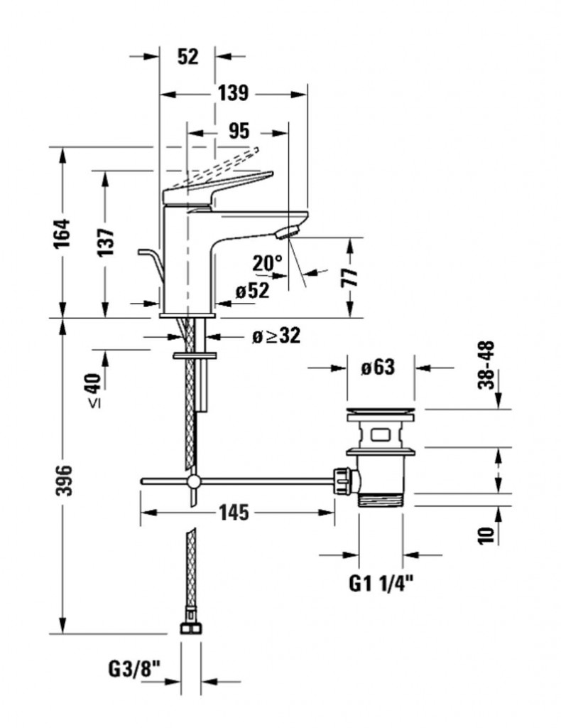 - s odtokovou soupravou ovládanou táhlem