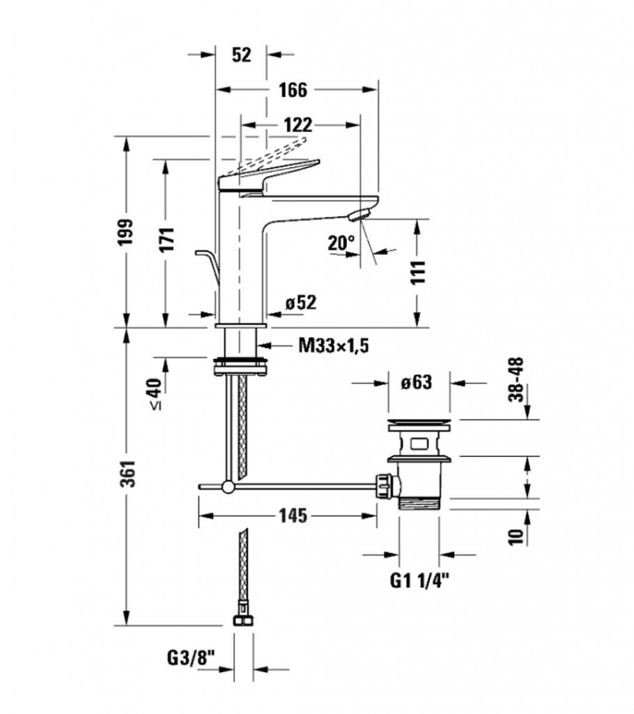- s odtokovou soupravou ovládanou táhlem