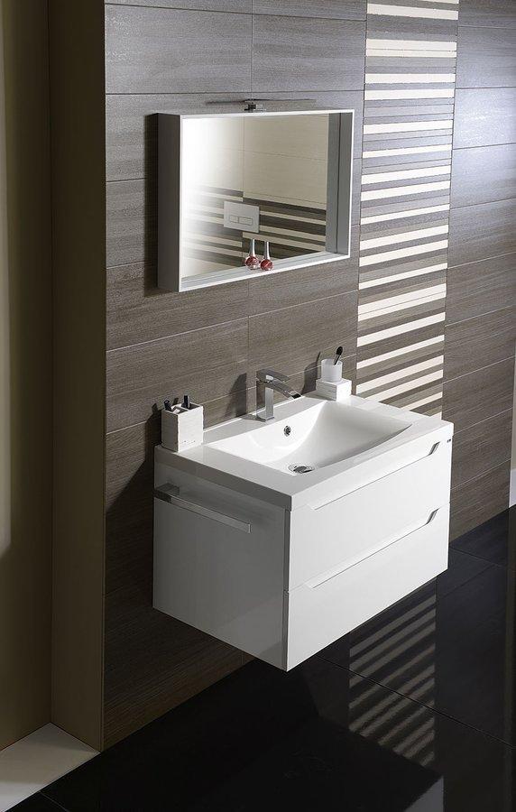 Designově zdařilá série koupelnového nábytku WAVE vyniká nadčasovou elegancí. Jednotícím prvkem je vlna, která probíhá čelní plochou nábytku, umožňuje pohodlné otevírání a zároveň koresponduje s vnitřní částí umyvadla LUCIOLA z litého mramoru.