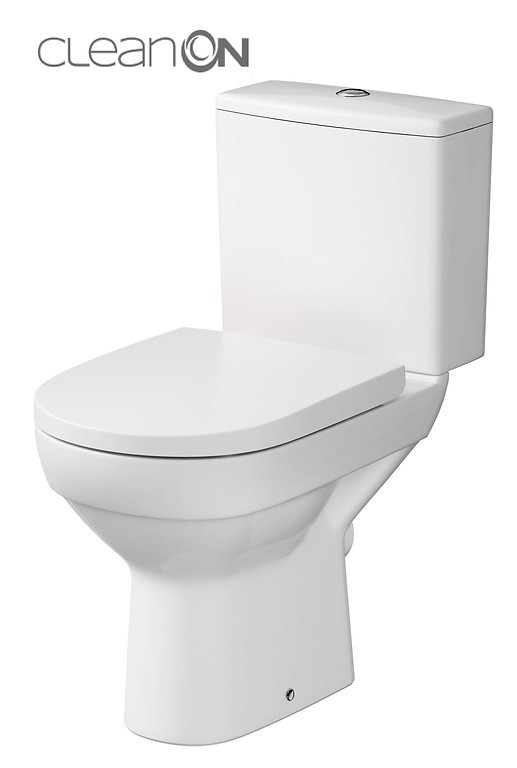 WC kombi stojící CITY CLEAN ON s unikátním bílým povrchem keramiky je se zadním vodorovným odpadem a přívodem vody z boční části nádrže s funkcí splachování 3/5 l, která výrazně sníží spotřebu vody.
