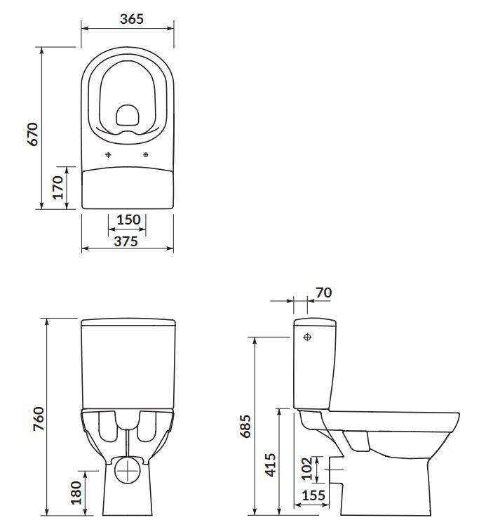 WC kombi CITY NEW CLEAN ON se zadním odpadem, přívod vody z boční části nádrže s úsporným splachováním 3/ 5l. Součástí je duroplastové, antibakteriální sedátko s pomalým sklápěním /soft close/ a systémem snadného sejmutí /one button easy off/.