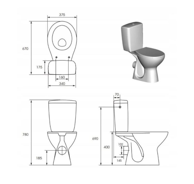 Kompaktní set je vybaven úsporným splachovacím systémem 3/6 l, který umožňuje efektivní hospodaření s vodou a pomáhá snižovat provozní náklady. WC má horizontální odtok a boční přívod vody do nádržky, což usnadňuje instalaci ve většině běžných koupelen.