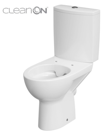 WC kombi mísa PARVA NEW CleanOn /bez oplachového kruhu/ s vodorovným zadním odpadem a přívodem vody z boku nádrže s funkcí splachování 3/5l.