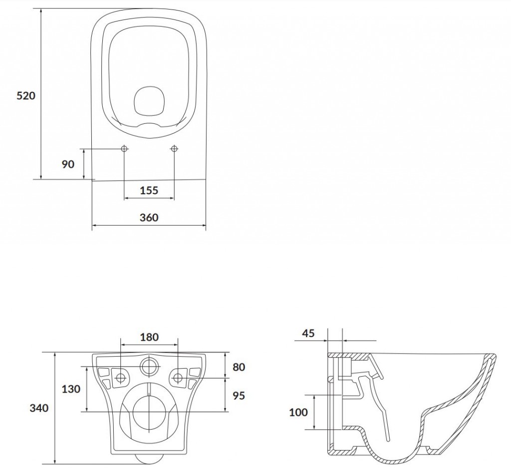 Závěsná mísa LARGA, CLEAN ON /bez oplachového kruhu/ s unikátním bílým povrchem keramiky se zadním odtokem a funkcí splachování 3,5l, která výrazně sníží spotřebu vody.