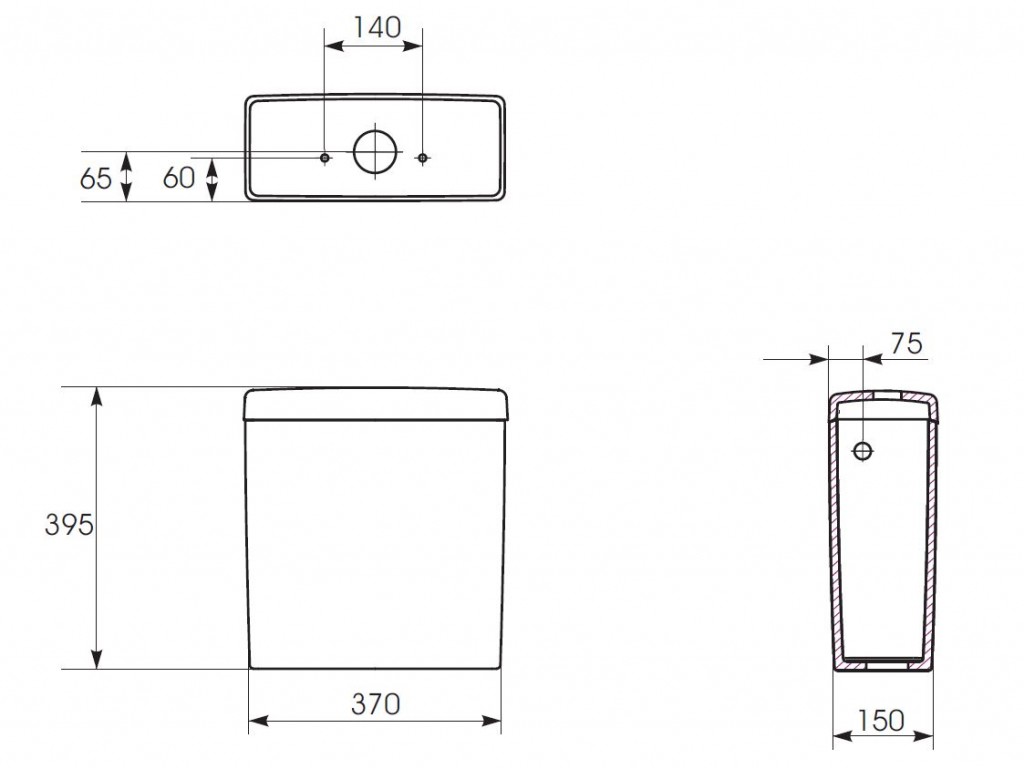 Keramická WC nádržka včetně bočního přívodu vody a funkcí splachování 3/5 l vody je dodávaná včetně těsnění, sadou ventilů a šroubů pro připojení k WC kombi míse.