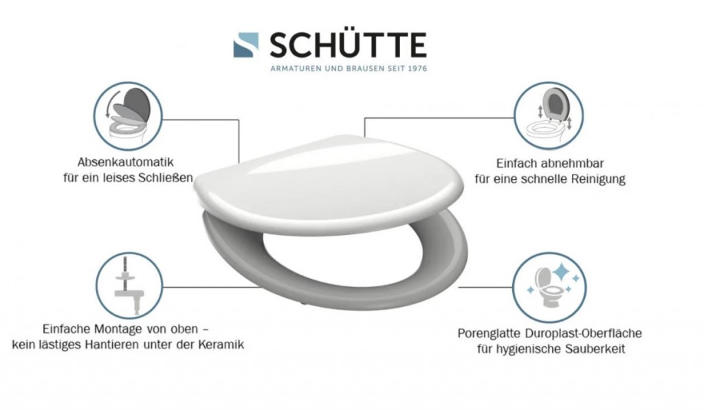 - Díky materiálu Duroplast, který je extrémně odolný proti rozbití a poškrábání, je víko toalety obzvláště odolné