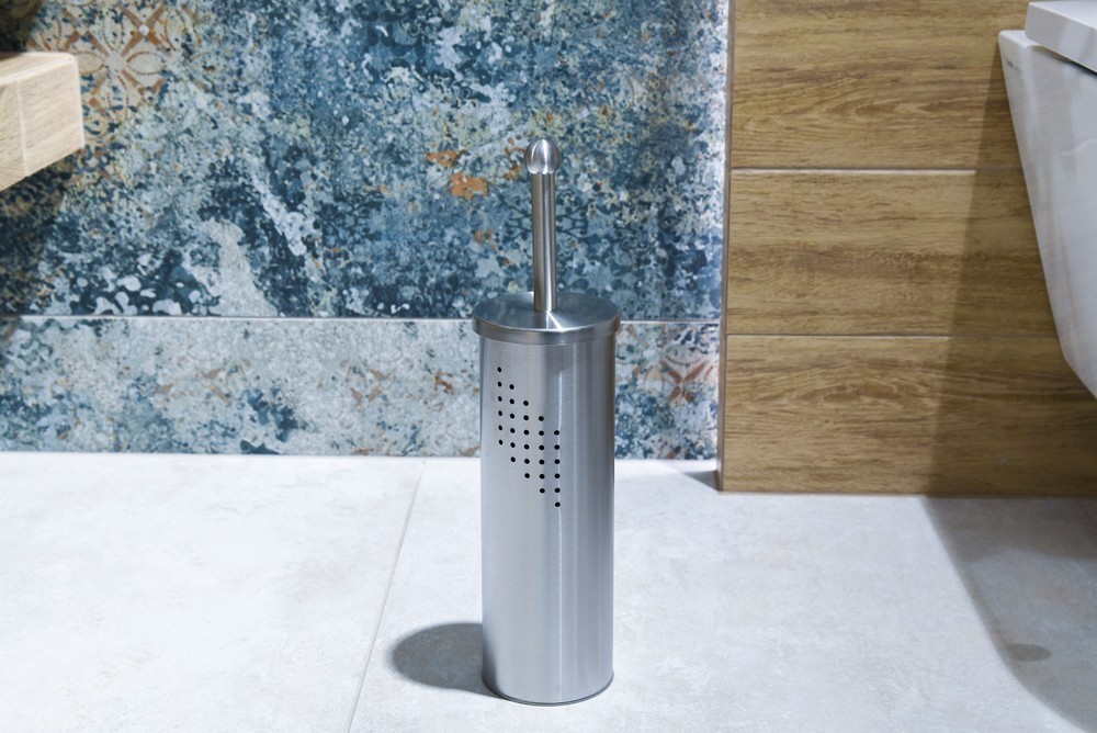 - Klasická toaletní štětka s pouzdrem a rukojetí z nerezové oceli