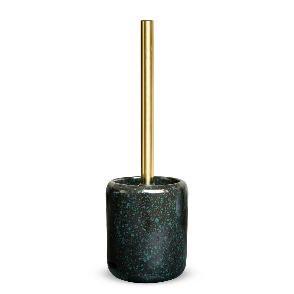 WC štětka s rukojetí ze série Beso je elegantním doplňkem do Vaší koupelny. Nádoba z černé kameniny má hladký, lakovaný povrch zdobený nepravidelnými zelenými skvrnami, což mu dodává jedinečný charakter. WC štětka má černou čisticí hlavici a stylovou zlatou rukojeť, která skvěle doplňuje luxusní design řady Beso spojující funkčnost s vytříbenou estetikou.