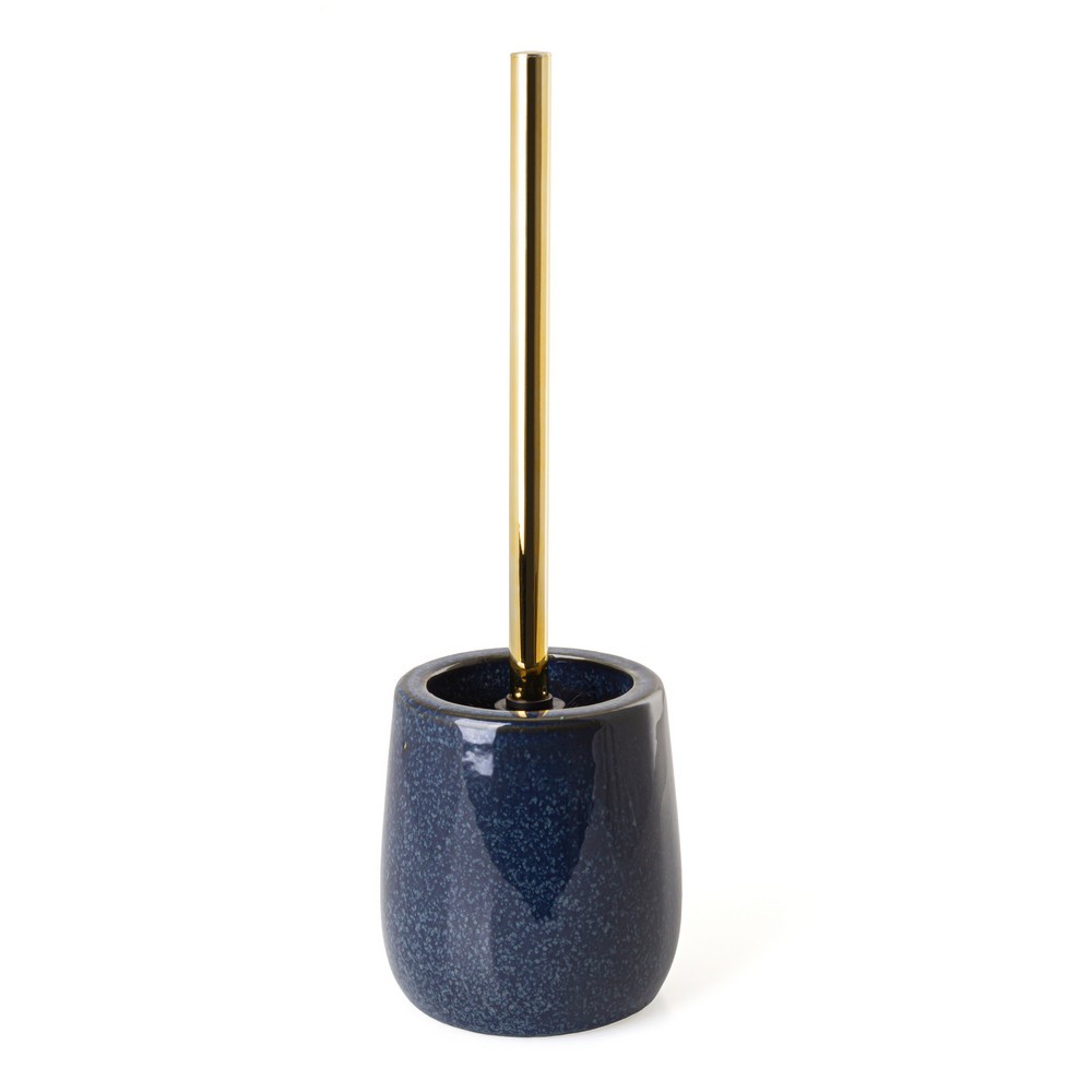 WC kartáč Friki je elegantní a stylový prvek, který skvěle doplní moderní interiéry. Držák je vyroben z kvalitní kameniny v námořnické modré barvě, zdobený jedinečným skvrnitým vzorem, který mu dodává osobitý vzhled. Černá čisticí část je spojena se zlatou rukojetí a dodává luxusní nádech každé koupelně. Jeho robustní konstrukce zajišťuje odolnost, zatímco minimalistický design znamená, že toaletní kartáč Friki plní nejen svůj praktický účel, ale slouží také jako stylový doplněk, který zvýrazňuje celkovou dekoraci prostoru.