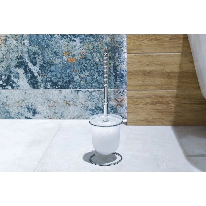 Volně stojící WC štětka KD02020006 s plastovou nádobou v imitaci skla a nerezovým držákem. Atraktivní kombinace kovu a pevného plastu propůjčuje WC štětce neobvyklý nadčasový vzhled. WC štětku není nutno montovat na zeď a lze tak velmi snadno používat.