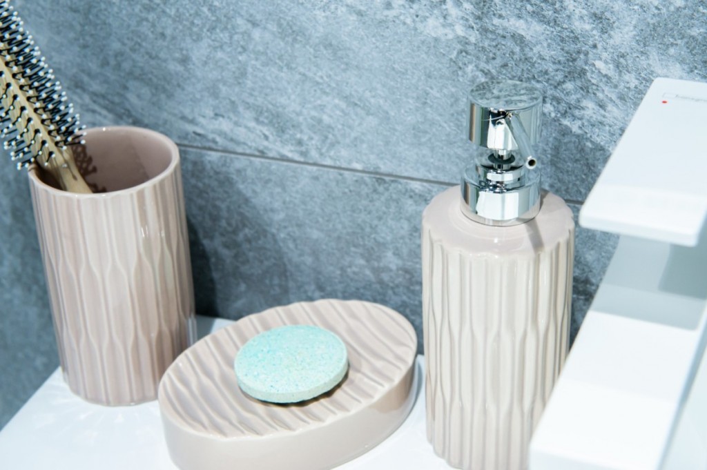 WC štětka ze série Libre. Skládá se z nádoby z kameniny, plastového kartáčku a nerezové rukojeti. Béžová koupelnová sada Libre se stříbrnou pumpičkou a kartáčovou rukojetí bude perfektní volbou, pokud hledáte univerzální a praktické doplňky. Ozdobné pruhy mu dodávají jedinečný a zajímavý vzhled. Ideální pro boho nebo klasické koupelnové aranžmá.