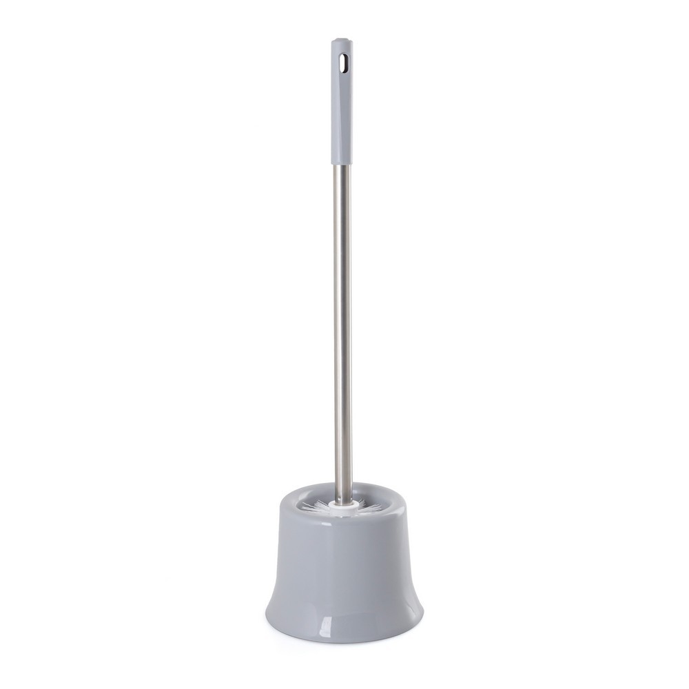 WC kartáč s plastovou nádobou v šedé barvě poskytuje praktické a estetické řešení pro udržení čistoty v koupelně. Lehká a hladká nádoba se snadno čistí a zajišťuje pohodlné používání. Čisticí hlavice kartáčku je vyrobena z hustých, plastových štětin v bílé a šedé barvě, účinně odstraňuje nečistoty a usazeniny z povrchů. Průměr hlavy kartáčku je přibližně 75 mm.