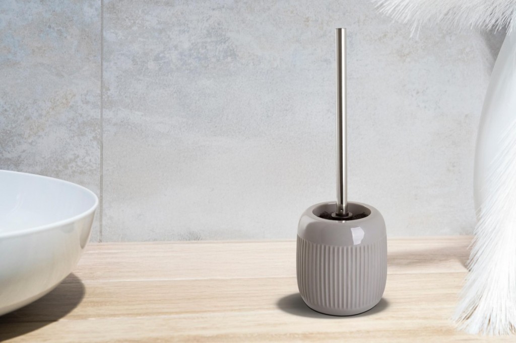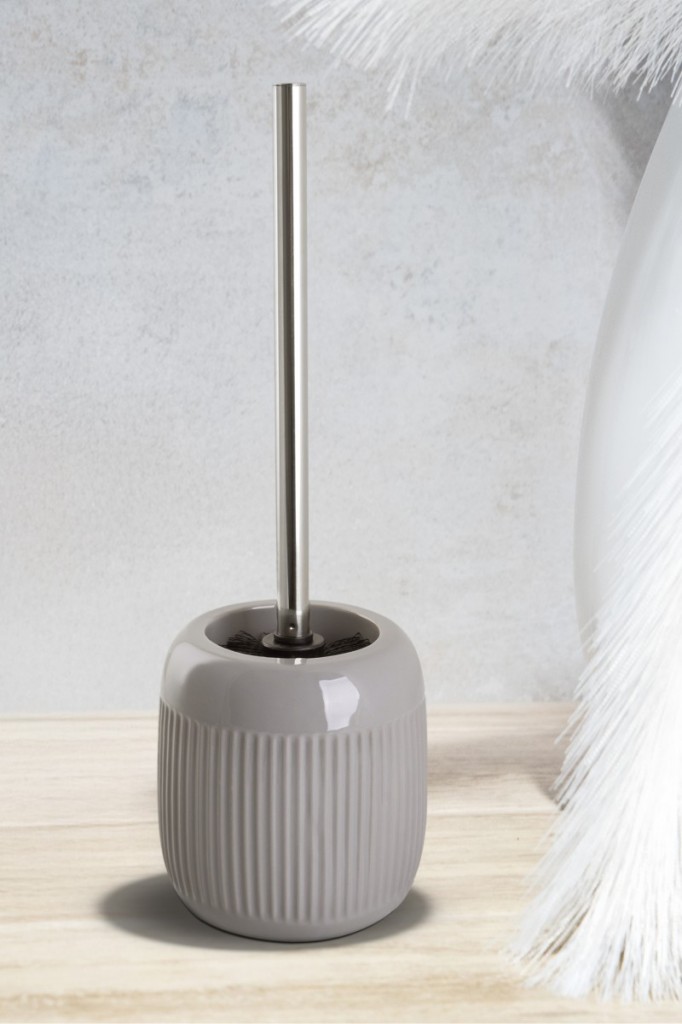 Popis: Záchodová štětka AWD INTERIOR 2007 z kolekce Tierra je elegantní a praktický koupelnový doplněk. Nádoba je vyrobena z vysoce kvalitní kameniny s lesklým šedým povrchem, což jí dodává nadčasový a sofistikovaný vzhled. Stříbrná rukojeť štětce dotváří design a dodává mu rafinovaný nádech. Díky svému univerzálnímu stylu se tato toaletní štětka bez problémů hodí do moderních i klasických interiérů. Snadno se čistí a je odolná, kombinuje funkčnost s estetikou. Jako součást sérieTierra ji lze kombinovat s dávkovačem mýdla, držákem na zubní kartáček a mýdlenkou a vytvořit tak ucelenou koupelnovou sadu.