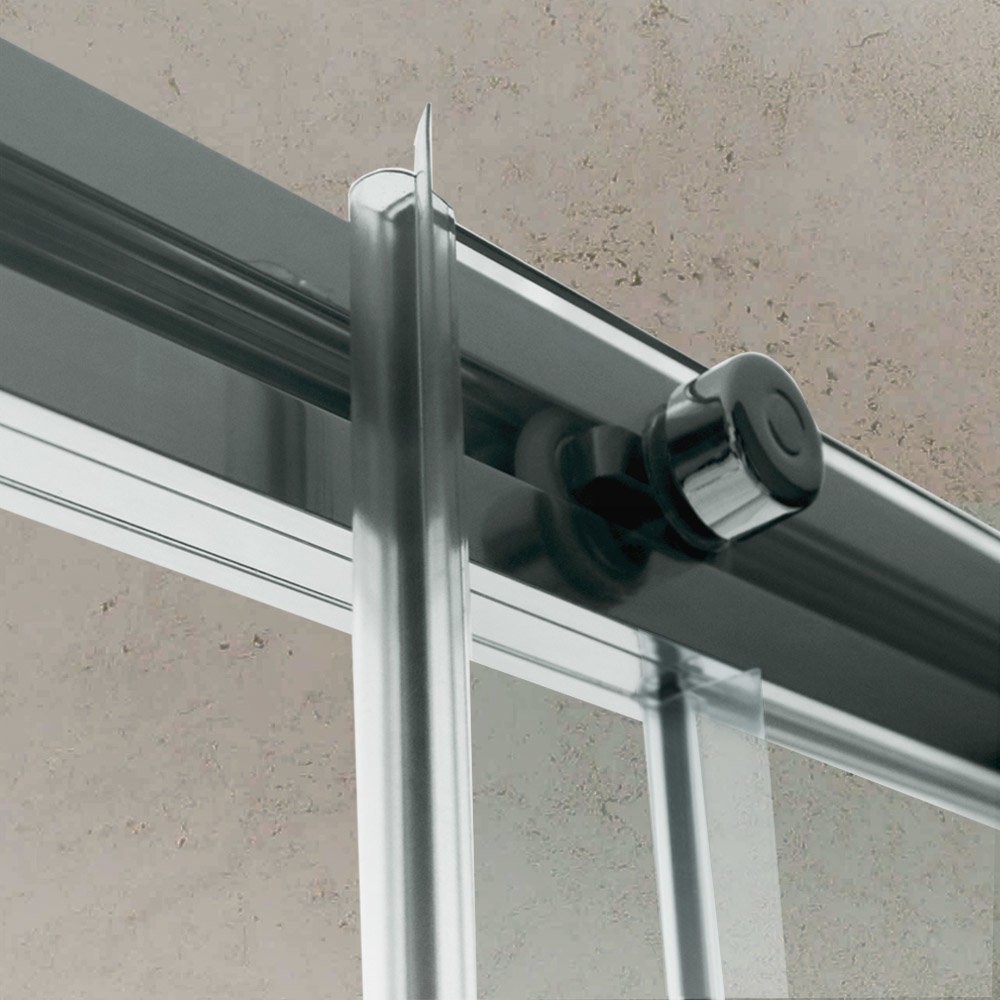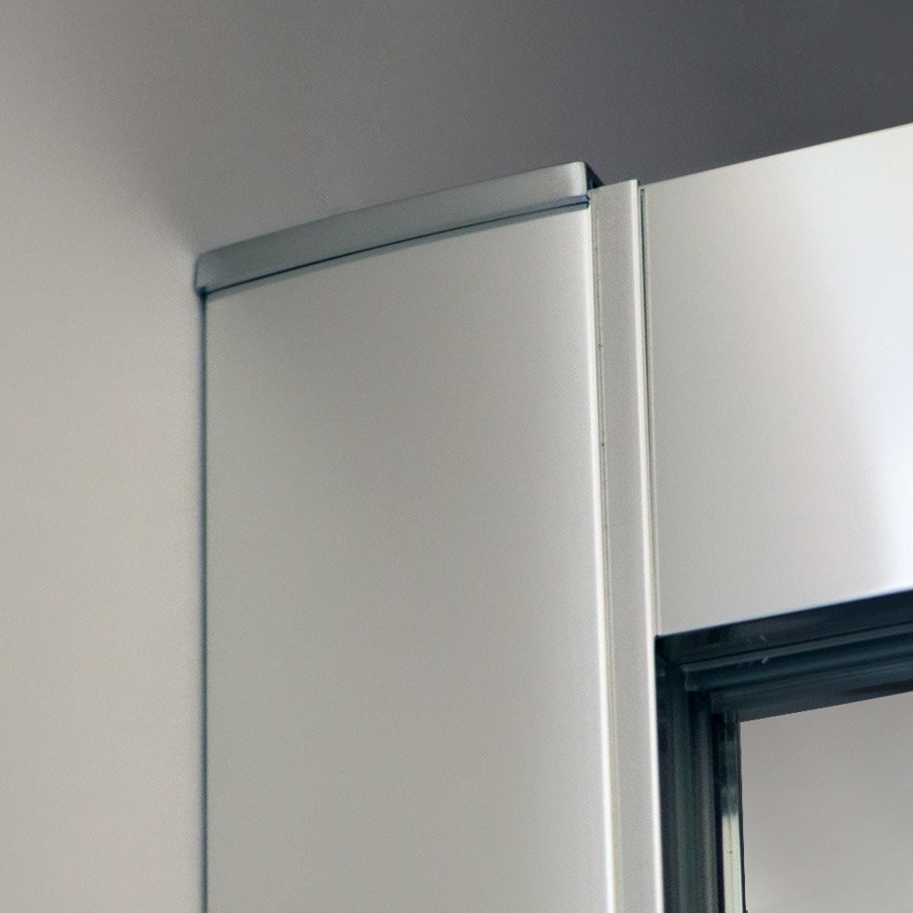 velmi oblíbený walk-in systém, avšak s inovativní možností posuvné části a skleněných výplních nejen čirého skla ale i atraktivního zrcadlového efektu MIRROR-glass. Tloušťka skla 6 mm ve výšce 200 cm definuje tuto modelovou sérii i z hlediska její příznivé cenové dostupnosti. Brzdící systém SOFT-Close při otevírání a zavírání dveří je neopomenutelnou praktickou výhodou.Skleněné plochy jsou ošetřeny impregnační vrstvou antiplakové úpravy Tekno.cal zjednošujúcu jejich pravidelnou údržbu.
