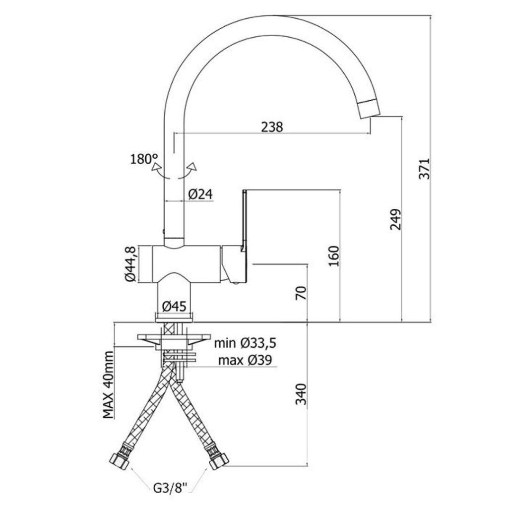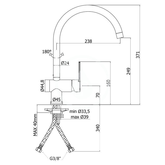 - délka výtoku 238 mm, komfortní zóna 249 mm