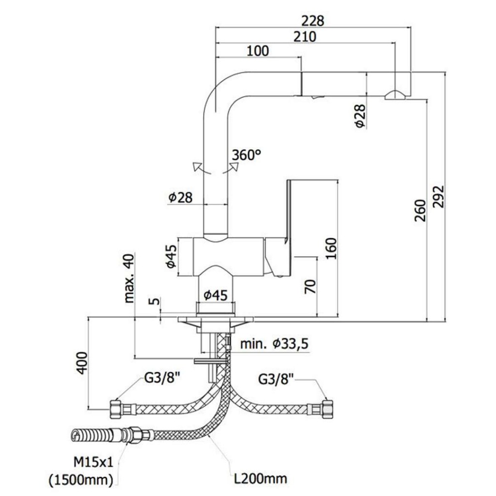 - set 2 nerezových hadiček G 3/8" pro připojení k roháčkům v délce 45 cm