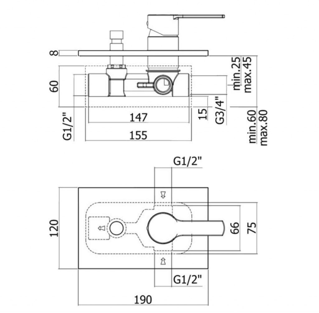 Sprchová podomítková baterie s tělesem
