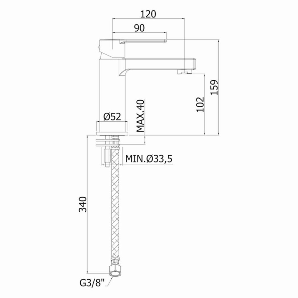 Umyvadlová stojánková baterie, bez výpustí