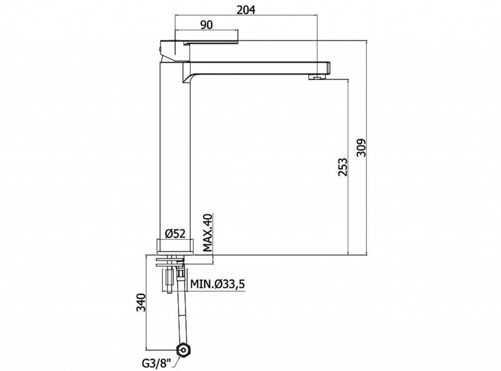 - délka výtoku 204 mm