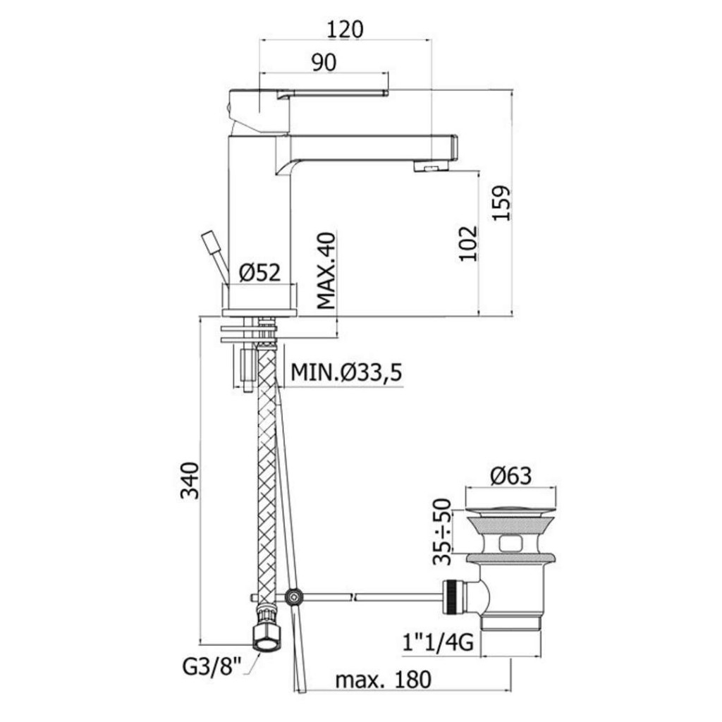 - délka výtoku 120 mm, komfortní zóna 102 mm